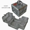 Acrylic cosmetic case B19527 Details: 1.Clear acrylic panel 2.Red round aluminum frame 3.Four clear trays