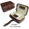Jewellery Box Item:B19960 Size:150*100*60mm Product Detail: 1.Brown PVC leather surface 2.Soft velvet lining 3.Mirror and pocket on the lid 4.Closure by a clasp 5.Handle made from self material